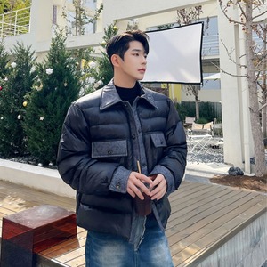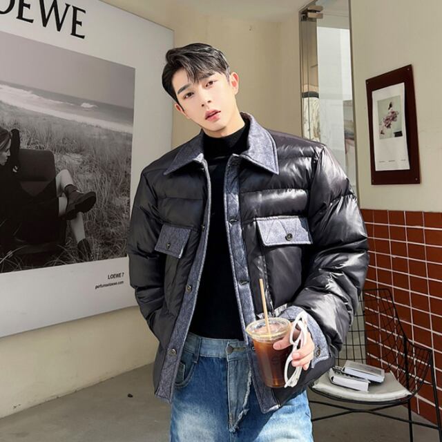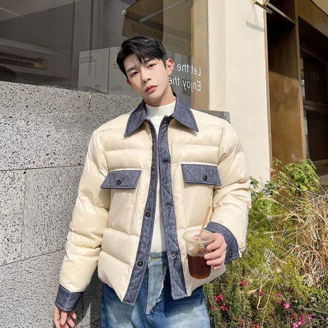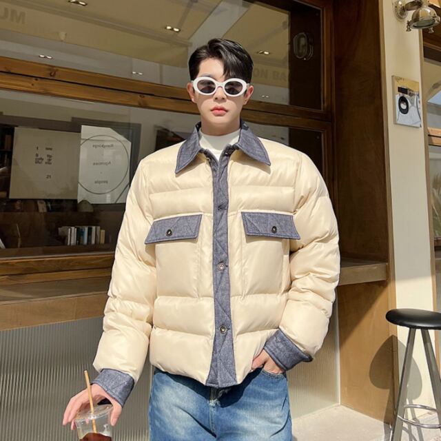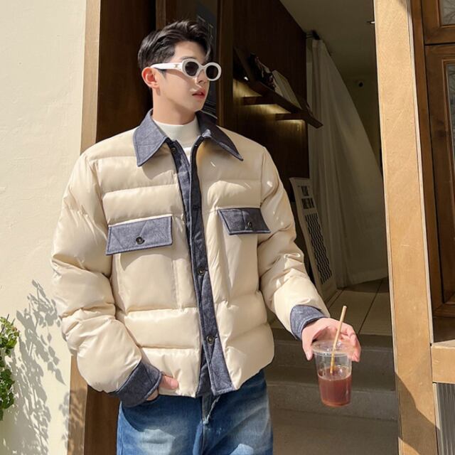 【予約販売】ダウンジャケット アウター ショート丈 切り替え 異素材MIX ブラック/アイボリーシンプル 防寒 メンズ 防寒 お洒落 こなれ感 ベーシック 秋冬 大きいサイズ M/L/XL