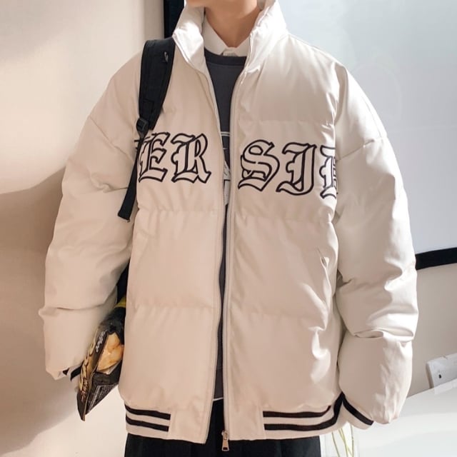 【予約販売】ダウン ブルゾン スタジャン アウター ブラック ホワイト バックデザイン ストリート 冬 ジャケット ショート丈 メンズ カジュアル 男前 こなれ感 お洒落 韓国 トレンド 秋 冬 M/L/XL/2XL