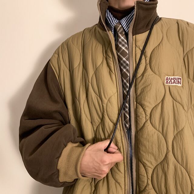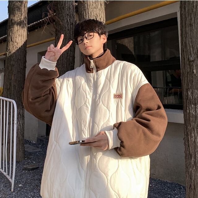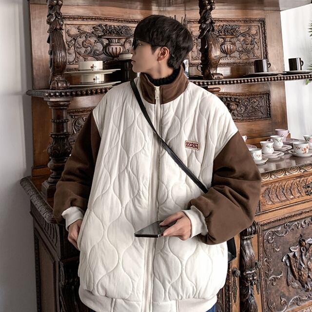 【予約販売】ブルゾン スタジャン アウター オフホワイト/ベージュ/グリーン キルティング ストリート 冬 ジャケット ショート丈 メンズ カジュアル 男前 こなれ感 お洒落 韓国 トレンド 秋 冬 M/L/XL/2XL