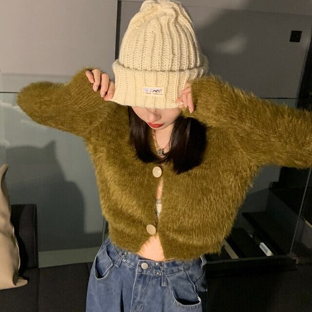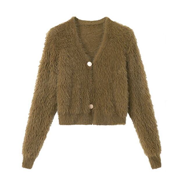 ーディガン レディース トップス ニット モヘア ファー Vネック カーデ おしゃれ ハイセンス こなれ感 一枚映え 大人可愛い 秋冬 ブラック/ホワイト/ピンク/ブラウン