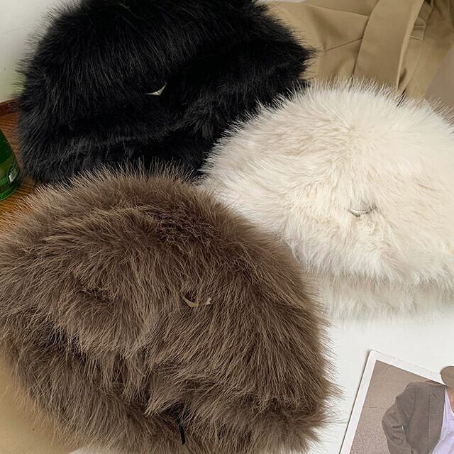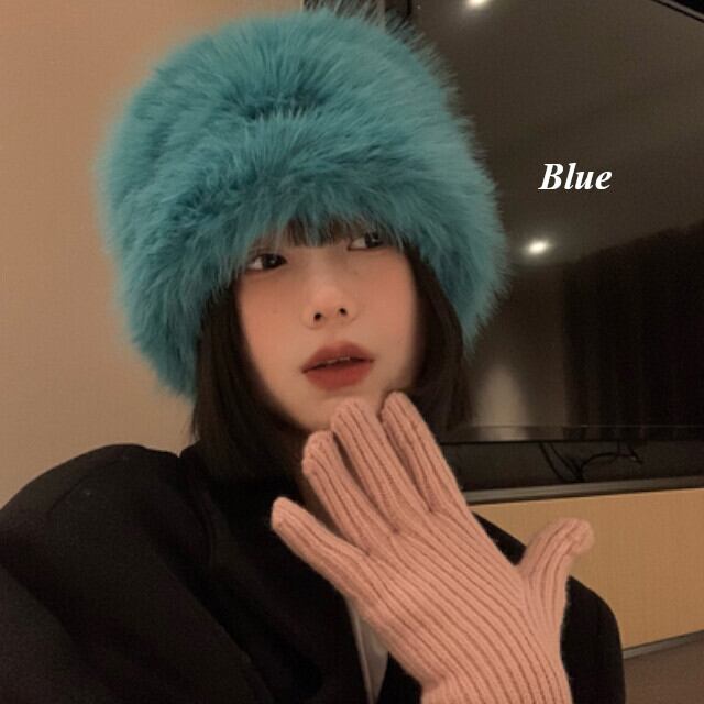 ハット バケットハット レディース 帽子 冬 小顔効果 もふもふ ふわふわ 秋冬 あたたかい リング付き おしゃれ シンプル スタイリッシュ カラバリ豊富 ブルー/ホワイト/カーキ/ブラック/モカ