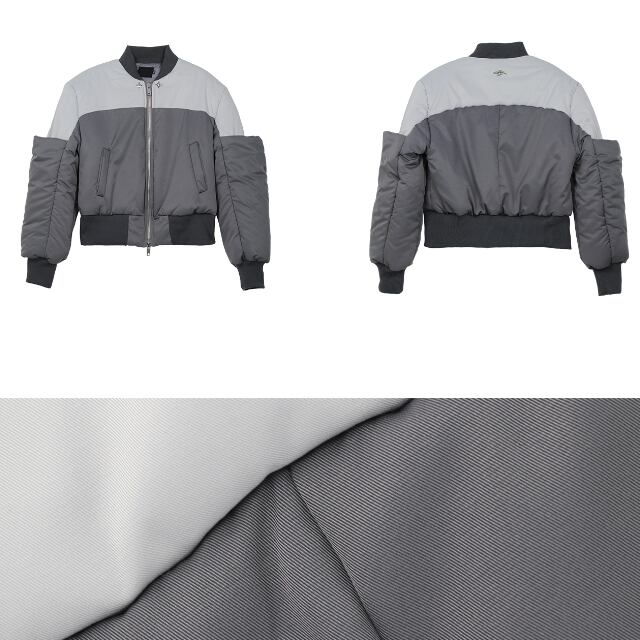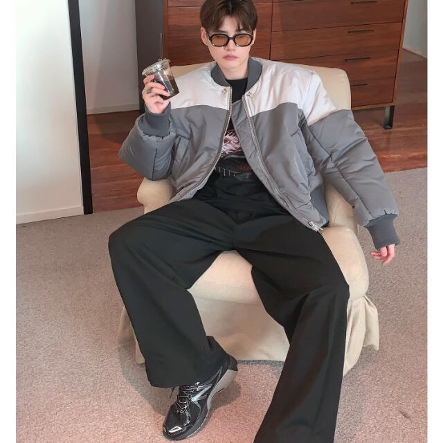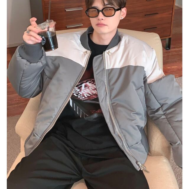 【予約販売】ブルゾン アウター ジップアップ MA-1 無地 バイカラー グレー ブラック ジャケット ショート丈 メンズ カジュアル 男前 こなれ感 お洒落 韓国 トレンド 秋 冬 M/L/XL