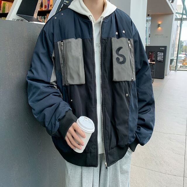 【予約販売】ブルゾン MA-1 アウター ポケット アーミー ジップアップ 無地 ネイビー グレー 防寒 ジャケット ショート丈 メンズ カジュアル 男前 こなれ感 お洒落 韓国 トレンド 秋 冬 S/M/L/XL/2XL