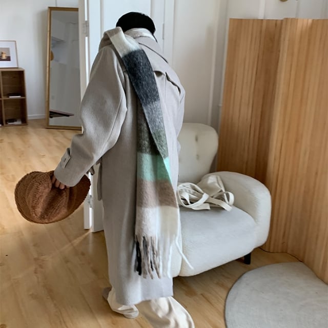 【予約販売】マフラー メンズ ストール チェック柄 厚手 ブルー/グレー 防寒 お洒落 暖かい ギフト プレゼント 人気 トレンド 差し色 韓国 冬