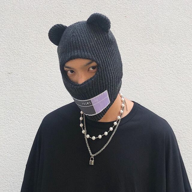 【予約販売】ニット帽 耳付き ワッチ ロールアップ 目出し帽 メンズ ストリート アウトドア カジュアル 防寒 ブラック/ダークグレー/ライトグレー/ブルー/ブラウン ダンス ヒップホップ こなれ感 お洒落 韓国 トレンド スキー スノボ