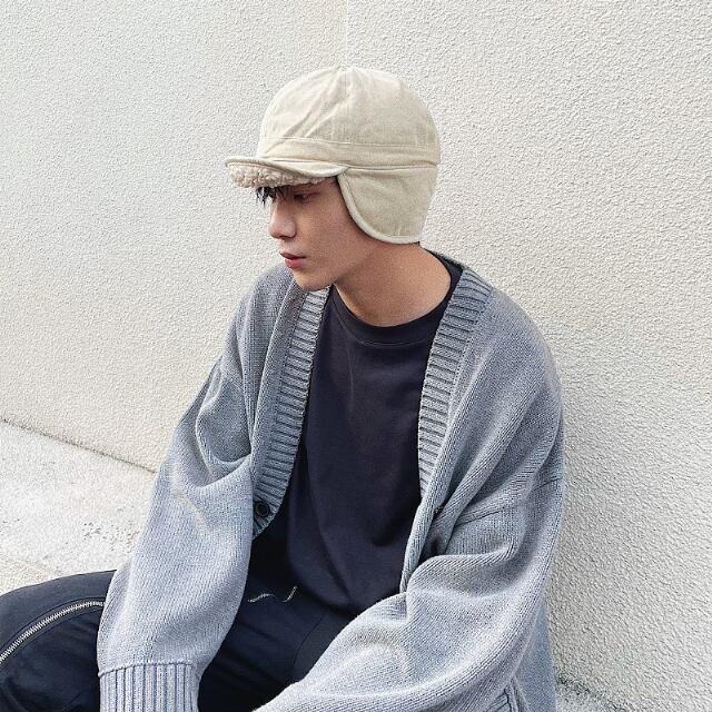 【予約販売】パイロット帽子 メンズ 裏ボア 厚手 オフホワイト/ブラック/グレー/ブラウン 裏起毛 耳当て付き ボア 保温 防寒 防風 暖かい もこもこ ふわふわ アウトドア イヤーウォーマー 耳当て お洒落 韓国 トレンド
