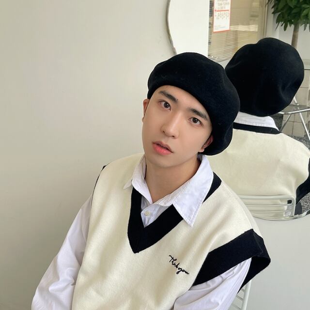 【予約販売】ベレー ベレー帽 メンズ 帽子 ハット ウール クラシック レトロ 防寒 防風 暖かい ブラック お洒落 韓国 トレンド