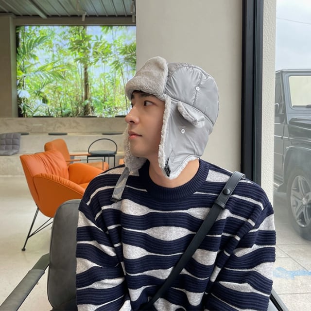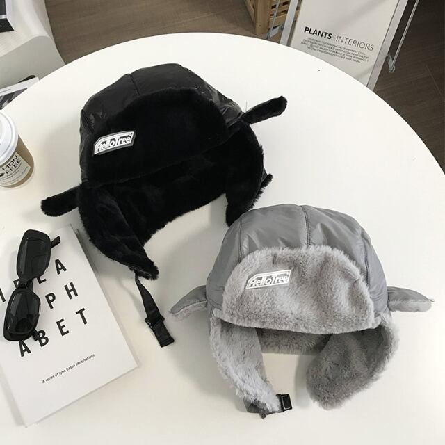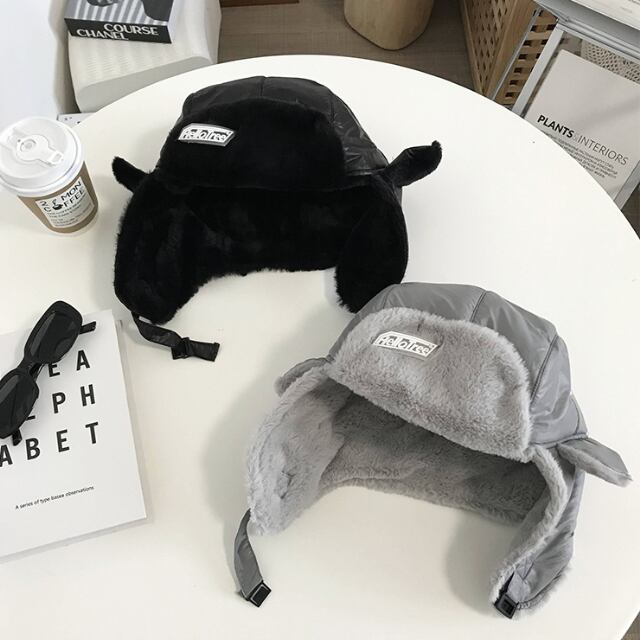 【予約販売】パイロット帽子 メンズ ロシア帽 厚手 ブラック/グレー 裏起毛 耳当て付き ボア 保温 防寒 防風 暖かい もこもこ ふわふわ アウトドア イヤーウォーマー 耳当て お洒落 韓国 トレンド