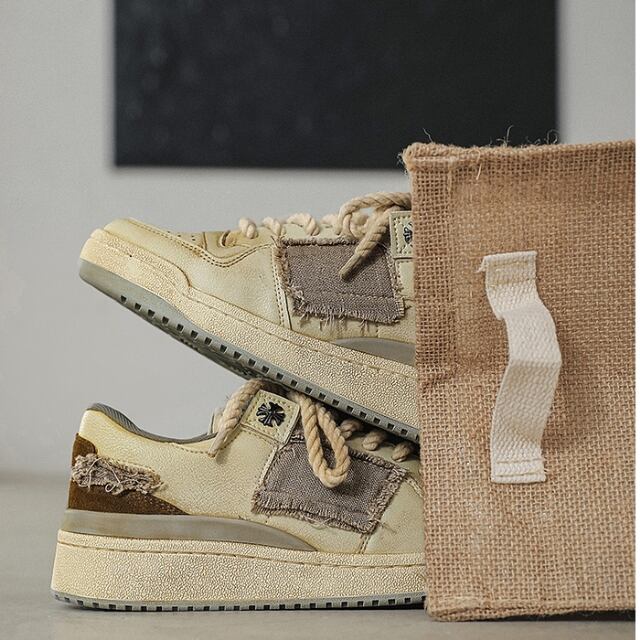 【予約販売】ダッドスニーカー メンズ アグリースニーカー 厚底 靴 ヴィンテージ風 レトロ ベージュ 韓国スニーカー お洒落 カジュアル B系 ダンス ストリート 韓国ファッション 24.5cm/25cm/25.5cm/26cm/26.5cm/27cm