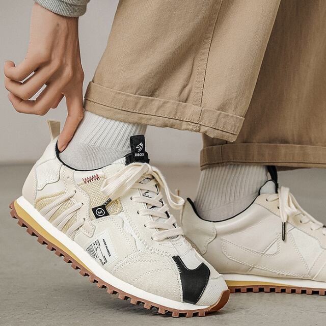 【予約販売】スニーカー メンズ ベージュ スエード キャンバス シンプル 厚底 ストリート シック 靴 シューズ お洒落 カジュアル こなれ感 韓国 トレンド 24cm/24.5cm/25cm/25.5cm/26cm/26.5cm/27cm