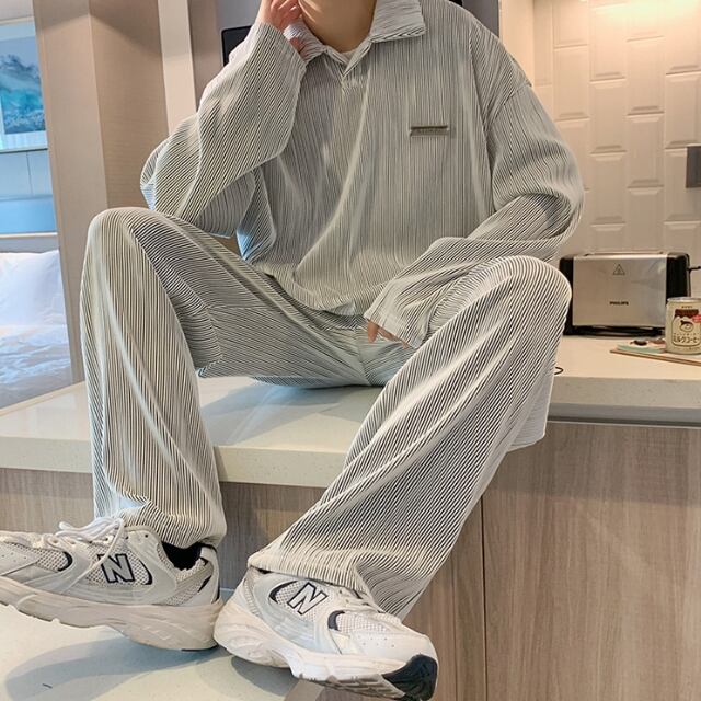 【予約販売】メンズ セットアップ 上下 長袖 グレー 男前 韓国 パンツ セット きれいめ 楽ちん 部屋着 ルームウエア カジュアル トレンド 大きいサイズ M/L/XL/2XL