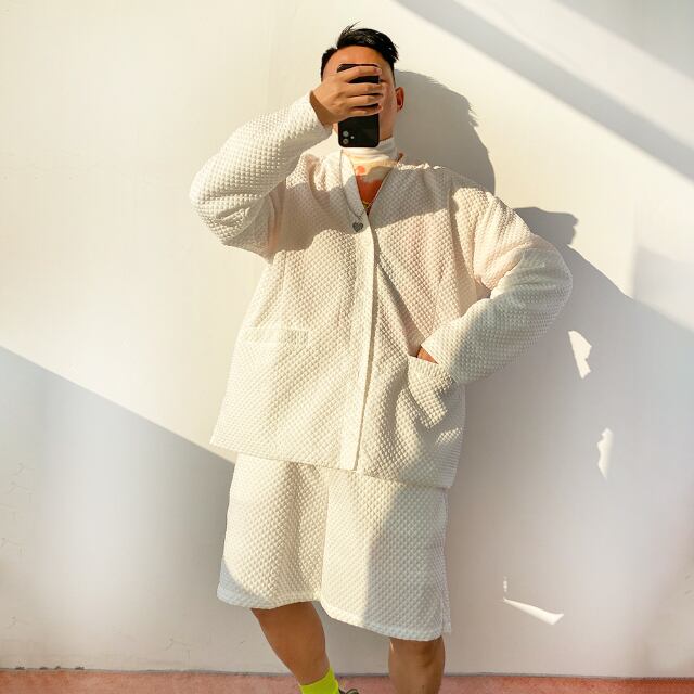 【予約販売】メンズ セットアップ 上下 長袖 カーディガン ハーフパンツ 無地 ストリート ブラック/ホワイト/イエロー 韓国 トレンド カジュアル 春 大きいサイズ M/L/XL