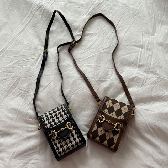 【予約販売】ショルダーバッグ レトロ メンズ 華奢 クラシック ミニバッグ ブラック ブラウン チェック柄 千鳥格子柄 斜め掛け クラシカル メッセンジャー 黒 こなれ感 お洒落 韓国 トレンド