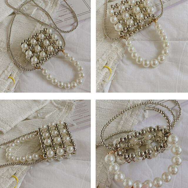 ショルダーバッグ レディース ミニバッグ ハンドバッグ 超ミニ コンパクト かわいい パール 宝石 チェーン オフホワイト 結婚式 パーティ お呼ばれ