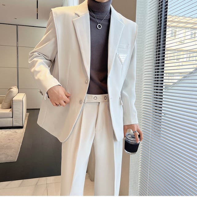 【予約販売】メンズ セットアップ スーツ 無地 シック タック 男前 ハンサム グレー/ブラック/ブラウン ジャケット パンツ セットアップ ビジネス 通勤 フォーマル パーティ 二次会 同窓会 結婚式 韓国 トレンド 春 秋 夏大きいサイズ M/L/XL/2XL