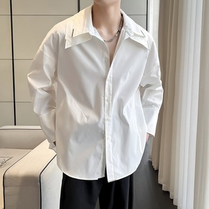 【予約販売】シャツ 長袖 シンプル 無地 ビッグカラー ベーシック モノトーン メンズ ホワイト ブラック カジュアル シック オーバーサイズ こなれ感 お洒落 韓国 トレンド 春 秋 M/L/XL/2XL