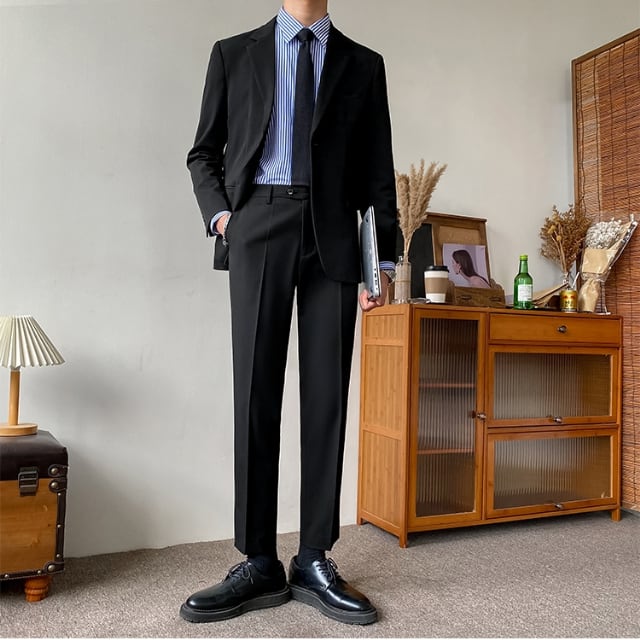 【予約販売】メンズ セットアップ スーツ 無地 シック 男前 スリム ハンサム ブラック/ベージュ ジャケット パンツ セットアップ ビジネス 通勤 フォーマル パーティ 二次会 同窓会 結婚式 韓国 トレンド 春 秋 夏大きいサイズ M/L/XL/2XL/3XL