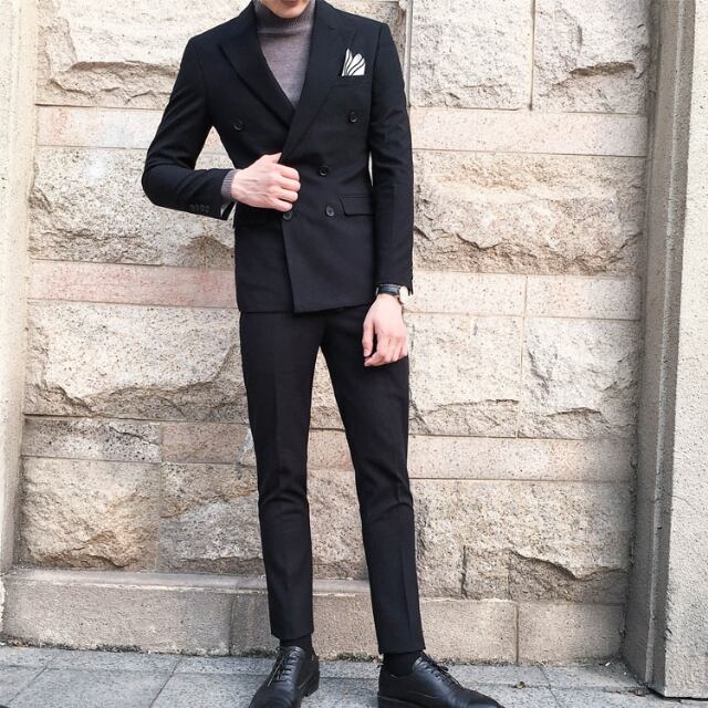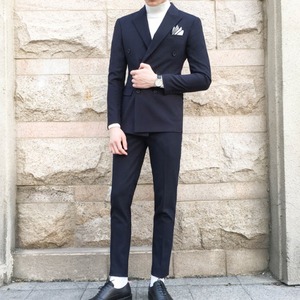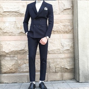 【予約販売】メンズ セットアップ スーツ 無地 シック ダブル 男前 スリム ハンサム ブラック/ネイビー ジャケット パンツ セットアップ ビジネス 通勤 フォーマル パーティ 二次会 同窓会 結婚式 韓国 トレンド 春 秋 夏大きいサイズ M/L/XL/2XL/3XL