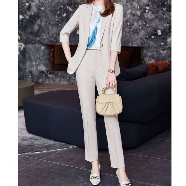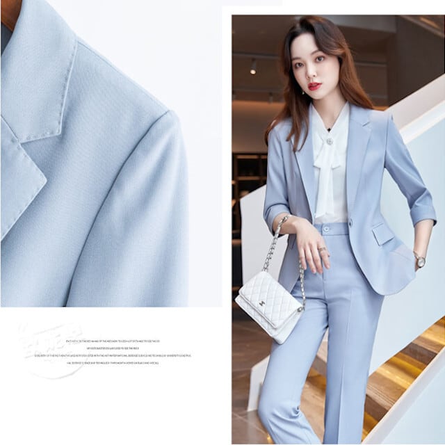 セットアップ レディース スーツ フォーマル リクルート 仕事着 オフィス スリム ハンサム こなれ感 おしゃれ シンプル ベーシック ジャケット パンツ ブルー/ブラック/ベージュ サイズ展開豊富 大きいサイズ 春秋 S/M/L/XL/2XL/3XL/4XL