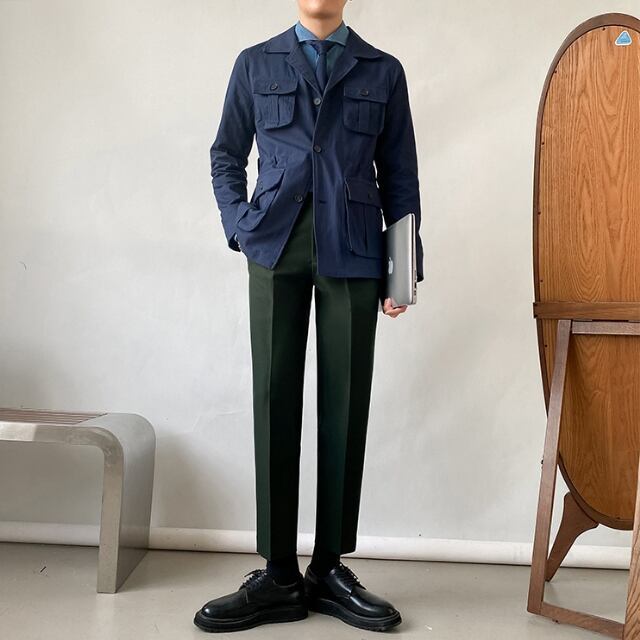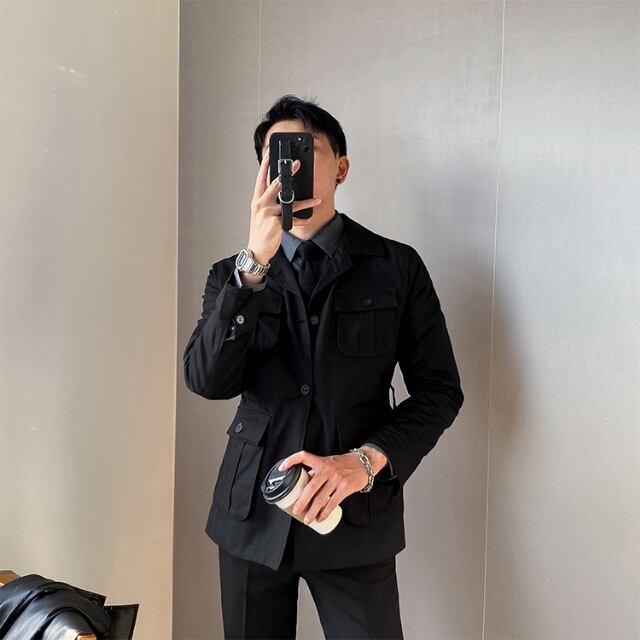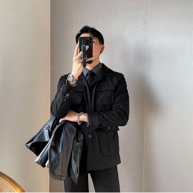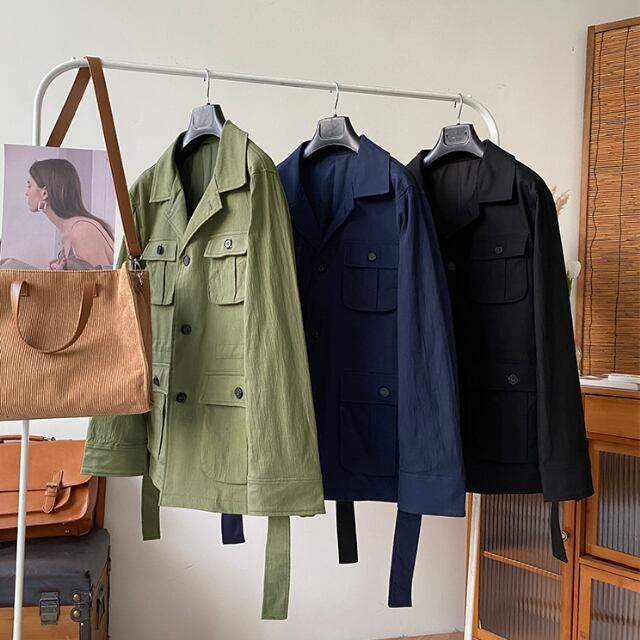 【予約販売】ジャケット アウター 無地 ミリタリー レトロ カーキ/ネイビー/ブラック ジャケット ポケット シック ショート丈 メンズ カジュアル 男前 こなれ感 お洒落 韓国 トレンド 春 秋 M/L/XL/2XL