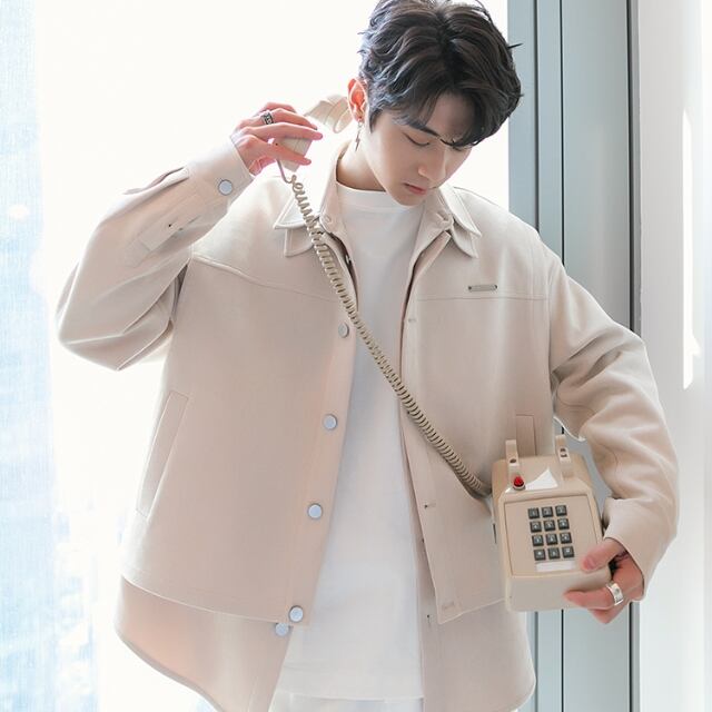 【予約販売】ブルゾン アウター レイヤード 重ね着 アイボリー ジャケット メンズ お洒落 こなれ感 カジュアル ベーシック 秋 春 大きいサイズ L/XL
