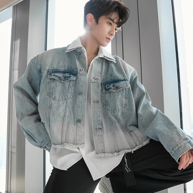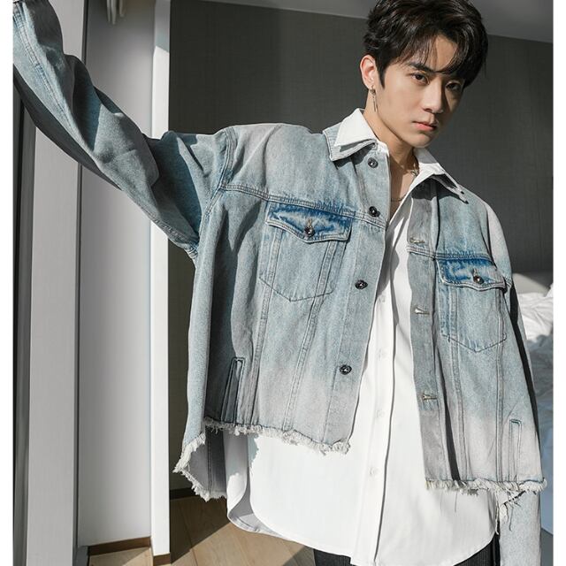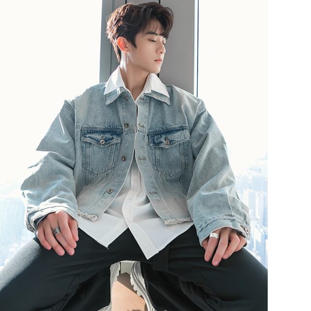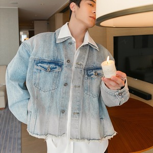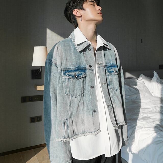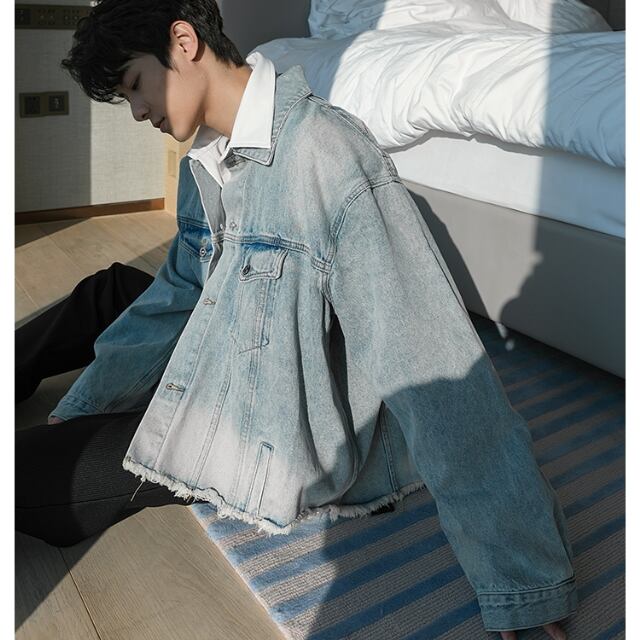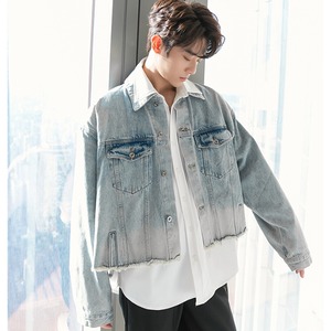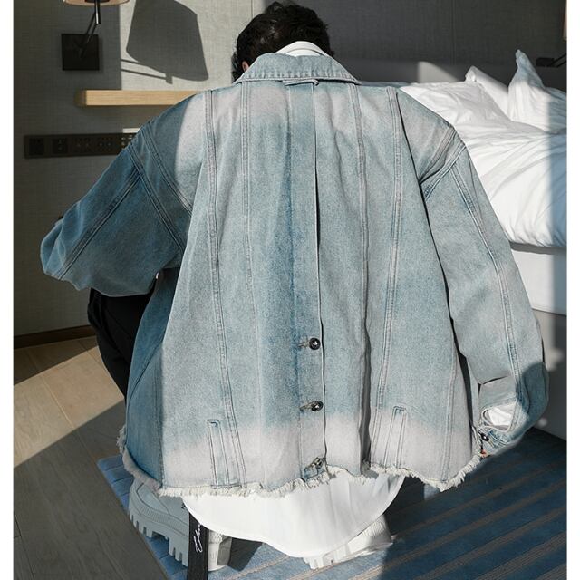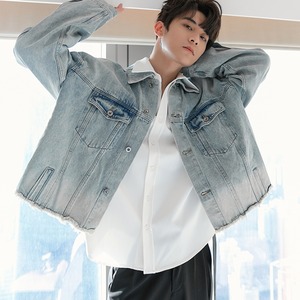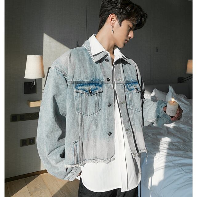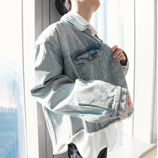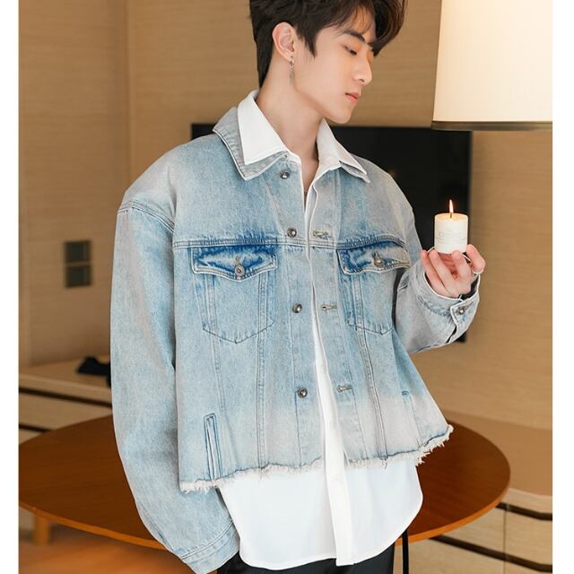 【予約販売】ブルゾン アウター ジージャン デニム 切りっぱなし ショート丈 ブルー ジャケット メンズ お洒落 こなれ感 カジュアル ベーシック 秋 春 大きいサイズ M/L/XL