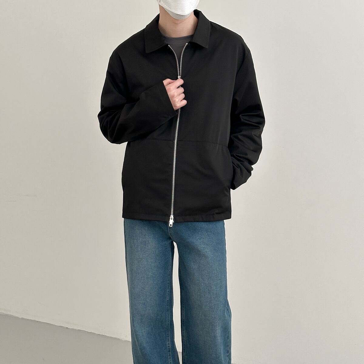 【予約販売】ブルゾン アウター ジップアップ 無地 黒 ブラック ジャケット シンプル シック ショート丈 メンズ カジュアル 男前 こなれ感 お洒落 韓国 トレンド 春 秋 M/L/XL/2XL