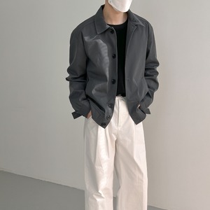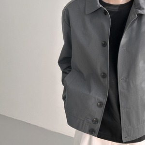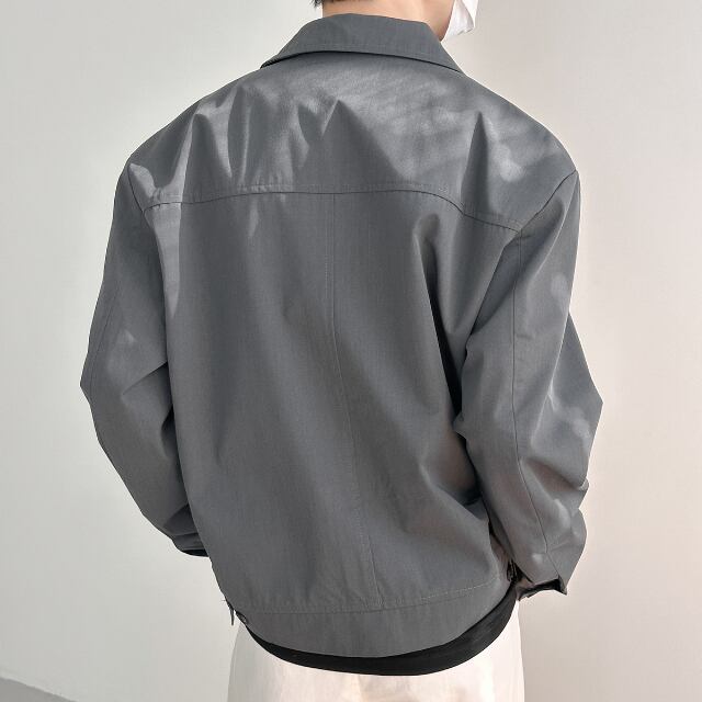 【予約販売】ブルゾン アウター ジップアップ 無地 グレー 灰色 ジャケット シンプル シック ショート丈 メンズ カジュアル 男前 こなれ感 お洒落 韓国 トレンド 春 秋 M/L/XL/2XL