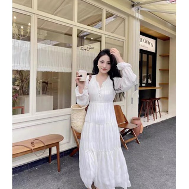 ワンピース レディース ロングワンピ ロング丈 Vネック 長袖 ボリュームスリーブ ティアードワンピ おしゃれ かわいい こなれ感 春秋 ベージュ/グリーン サイズ:S/M/L/XL