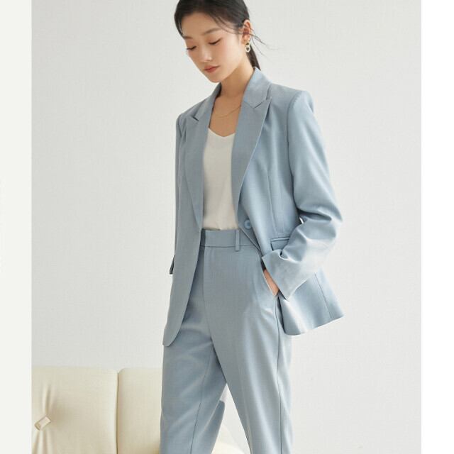 セットアップ レディース スーツ フォーマル リクルート 仕事着 オフィス スリム ハンサム こなれ感 おしゃれ シンプル ベーシック ジャケット イレギュラーヘム パンツ ブルー/ベージュ/ブラック 春秋 S/M/L/XL