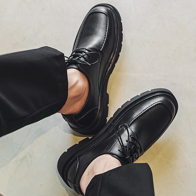 【予約販売】レザーシューズ 革靴 メンズ ローファー 厚底 シンプル 靴 デザイン モード ブラック 黒 クラシカル お洒落 カジュアル シック パーティー 結婚式 24cm/24.5cm/25cm/25.5cm/26cm/26.5cm/27cm