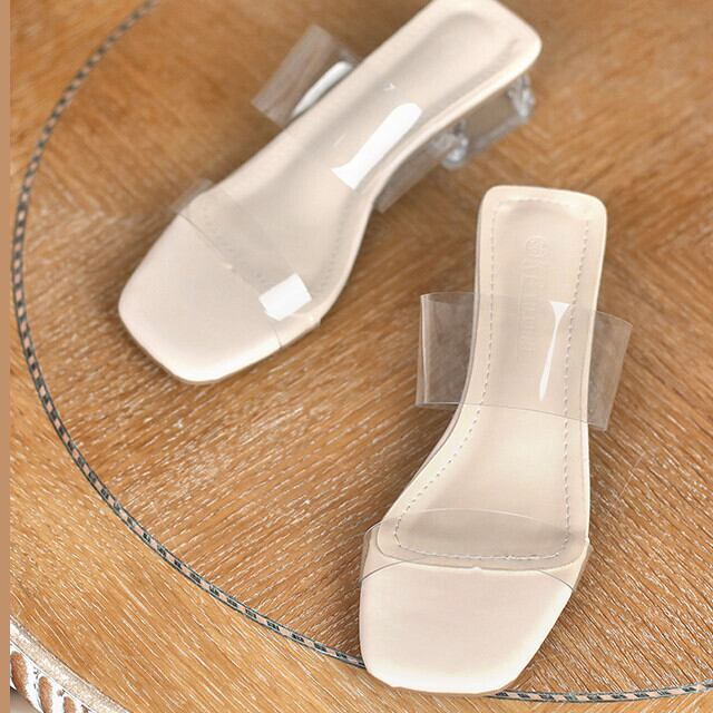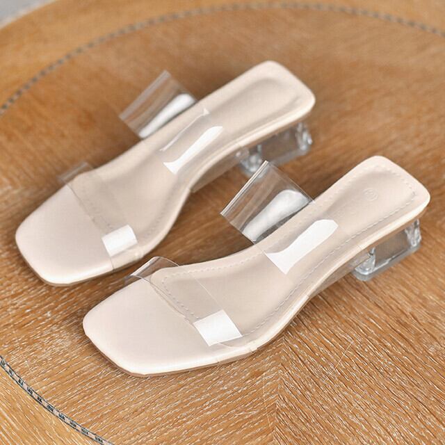 サンダル レディース シューズ 靴 クリア スケルトン ローヒール チャンキーヒール かわいい おしゃれ アプリコット 22cm/22.5cm/23cm/23.5cm/24cm/24.5cm/25cm