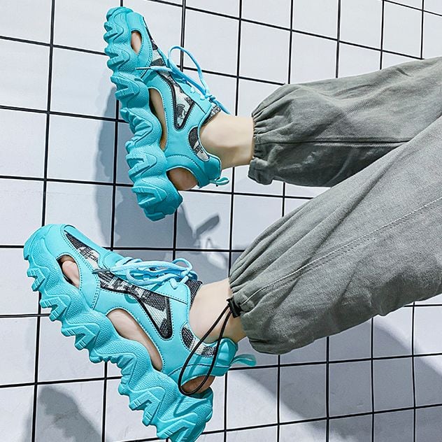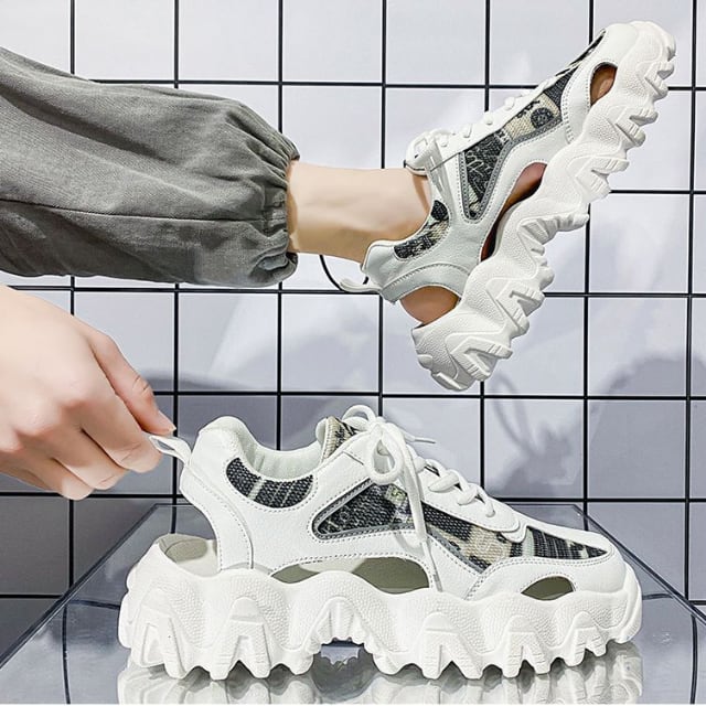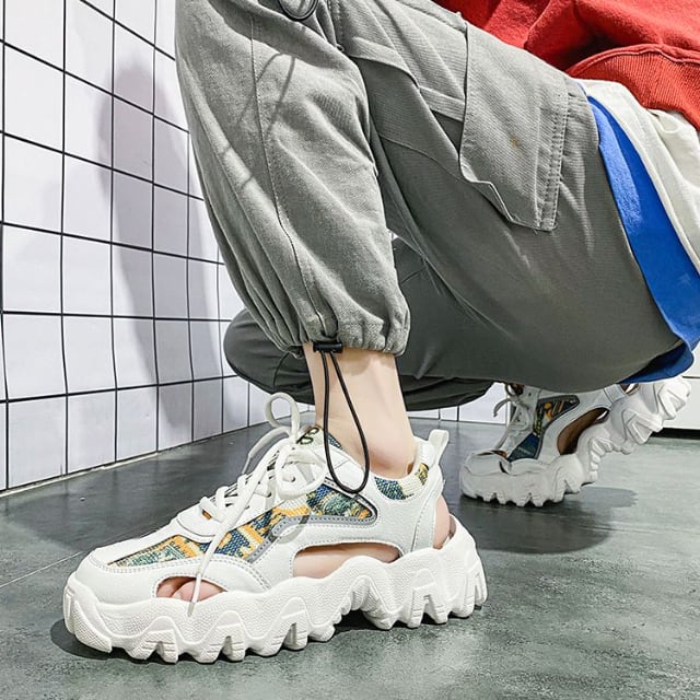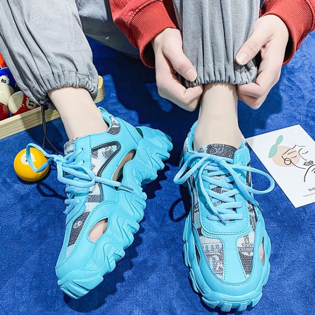 【予約販売】サンダル メンズ 厚底 カジュアル スニーカー風 靴 ブルー/ホワイト×ブラック/ホワイト×イエローー お洒落 こなれ感 24.5cm/25cm/25.5cm/26cm/26.5cm/27cm