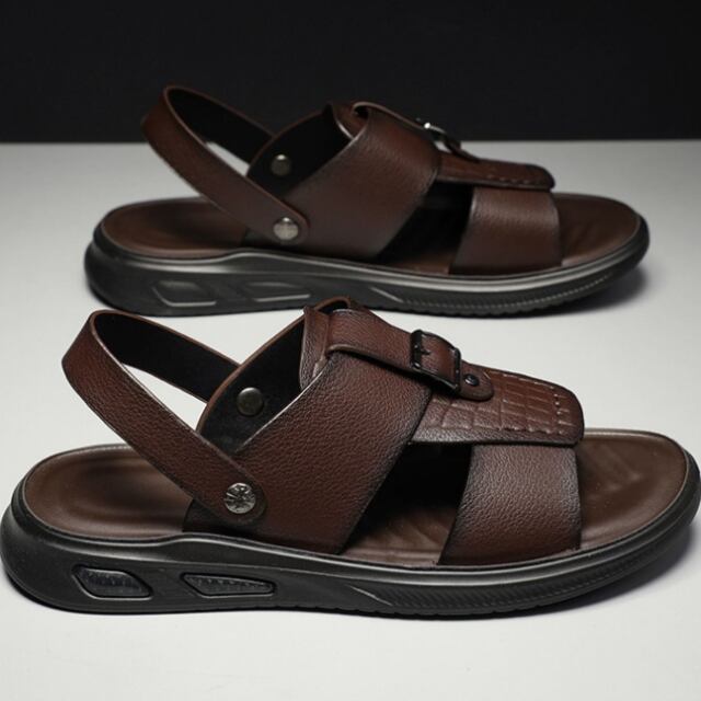 【予約販売】サンダル メンズ フラット 2WAY カジュアル スリッパ レザー 靴 ブラック ブラウン お洒落 こなれ感 24cm/24.5cm/25cm/25.5cm/26cm/26.5cm/27cm