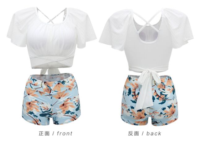 【予約販売】水着 メンズ レディース カップル水着 4点セット ペアルック 花柄 総柄 パレオ ブルー ホワイト セパレート水着 海水パンツ 海パン ペア サウナ 温泉 プール ペア水着 恋人 おそろい お揃い M/L/XL/2XL/3XL