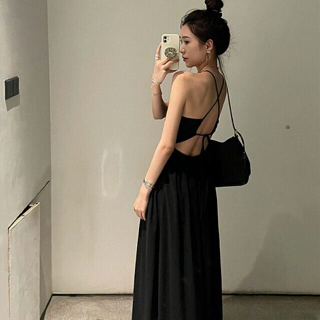 ワンピース レディース ロング丈 ロングワンピ 春夏 キャミワンピ 背中開き 肌見せ リゾート 旅行 ビーチ プール ブラック S/M/L/XL/2XL
