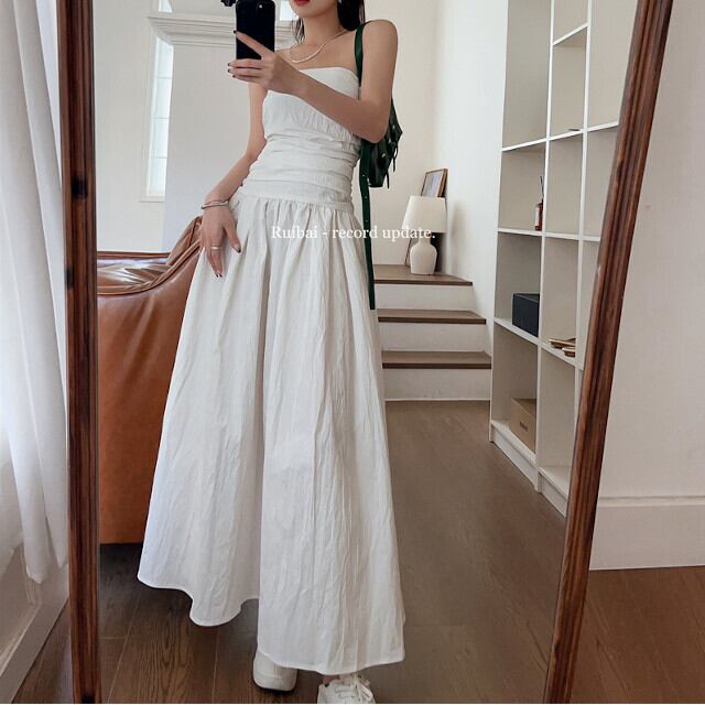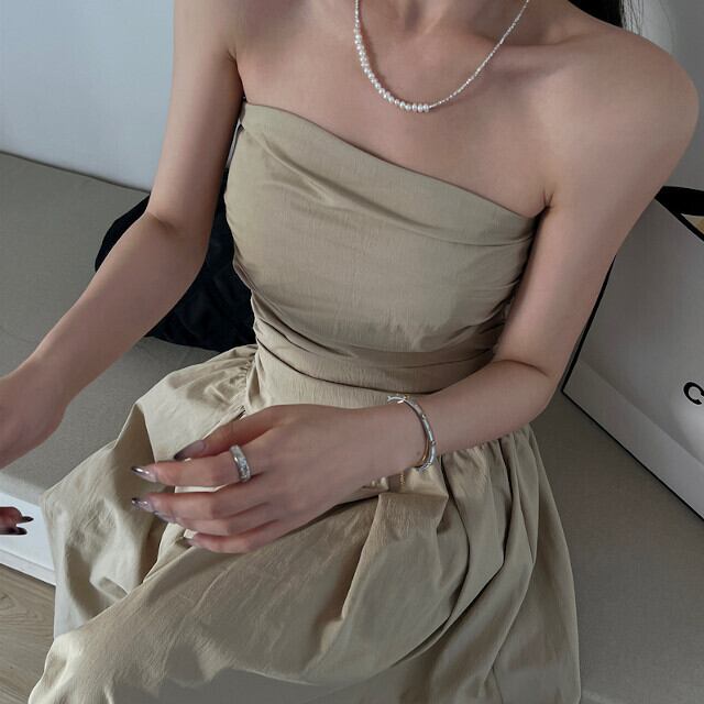 ワンピース レディース ワンピースドレス ロング丈 ロングワンピ フレア チューブトップ 鎖骨見せ おしゃれ パーティ ビーチ 旅行 リゾート 春夏 ホワイト/カーキ S/M