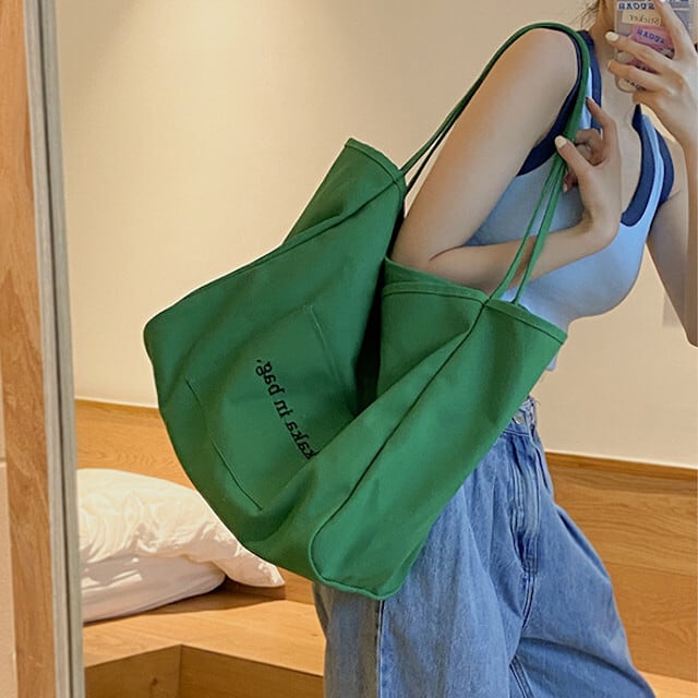 バッグ レディース トートバッグ ショルダーバッグ エコバッグ キャンバス ロゴ かわいい おしゃれ 大容量 旅行 お出かけ 春夏 ショッピング カラバリ豊富 グリーン/オレンジ/ベージュ/ピンク