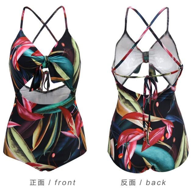 【予約販売】水着 カップル水着 3点セット ペアルック メンズ レディース ブラック ボタニカル柄 フラワー柄 総柄 モノキニ パレオ 海水パンツ 海パン ペア サウナ 温泉 プール ペア水着 恋人 おそろい お揃い M/L/XL/2XL/3XL