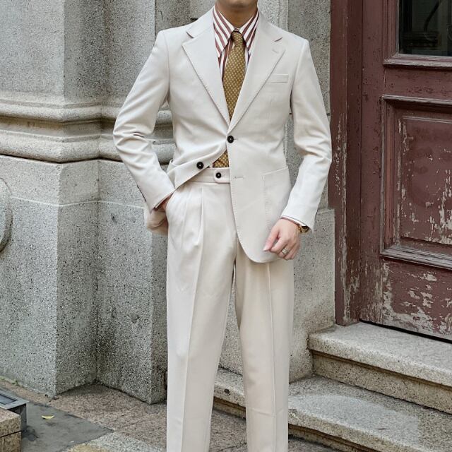 【予約販売】メンズ セットアップ スーツ 無地 シック シングル 男前 スリム ハンサム アイボリー/ブラック ジャケット パンツ セットアップ ビジネス 通勤 フォーマル パーティ 二次会 同窓会 結婚式 韓国 トレンド 春 秋 夏 大きいサイズ M/L/XL/2XL/3XL