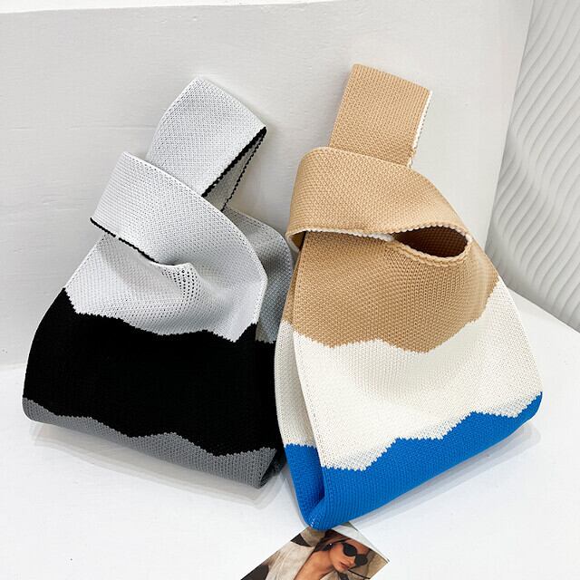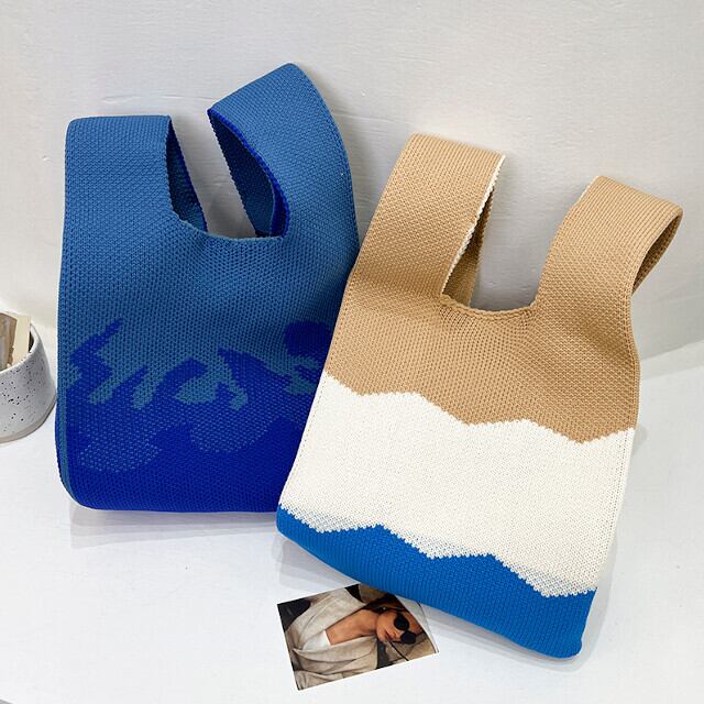 バッグ トートバッグ レディース 鞄 ニット ミニバッグ かわいい ニュアンス柄 カジュアル お出かけ 小物入れ カラバリ豊富 ブルー/オレンジ/パープル/ブラック/ベージュ
