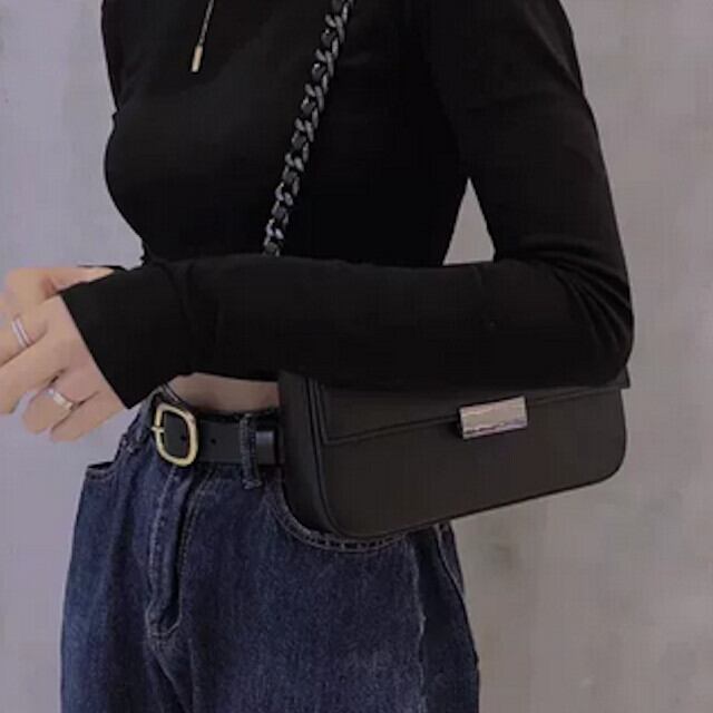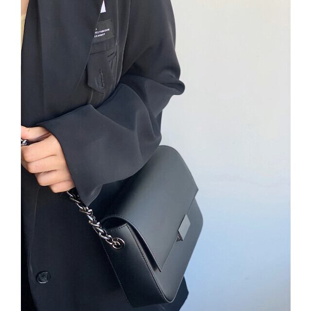 ショルダーバッグ バッグ レディース 鞄 モード チェーン 定番 スクエア かっこいい おしゃれ シンプル ブラック