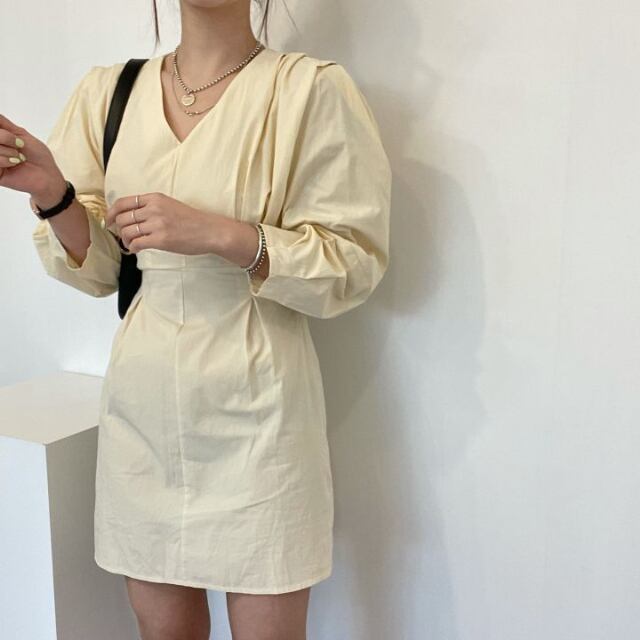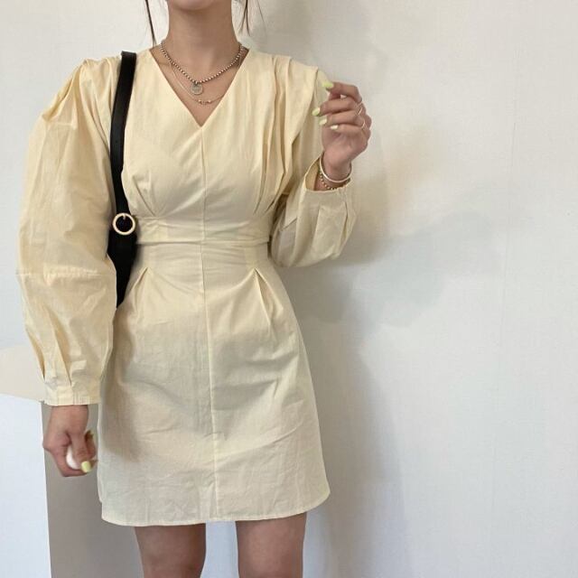 【予約販売】ワンピース レディース ミニワンピース 長袖 ライトベージュ/ダークベージュ ボリューム袖 タイト ドレス きれいめ ワンピ 大人可愛い エレガント おしゃれ こなれ感 韓国 春 夏 トレンド フリー