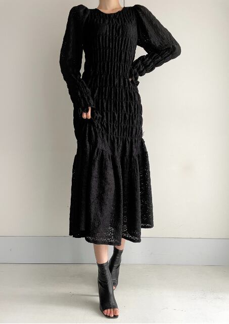 【予約販売】ワンピース レディース ロングワンピース ブラック ホワイト レース ボリューム袖 ドレス きれいめ ワンピ 大人可愛い ドレス 結婚式 エレガント おしゃれ こなれ感 韓国 春 夏 秋 トレンド フリー