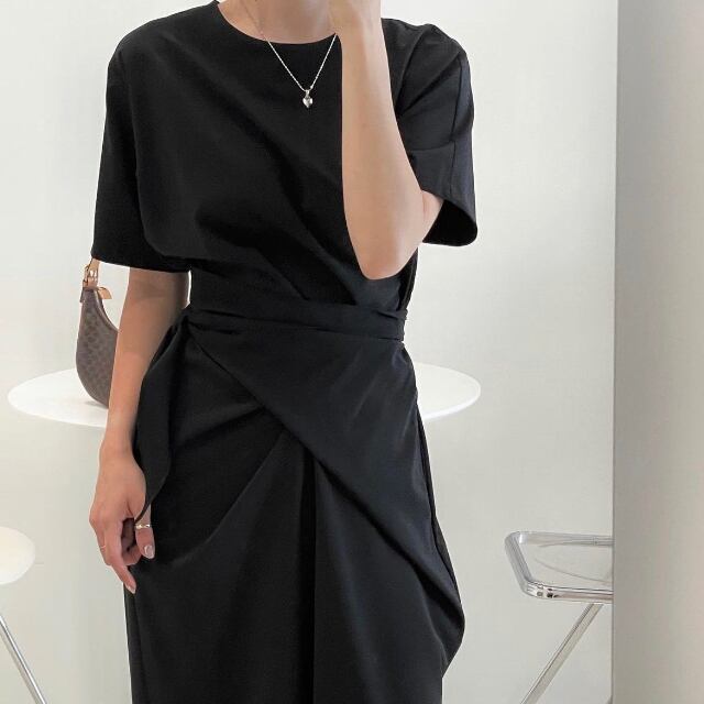 【予約販売】ワンピース レディース ロングワンピース 巻きスカート ラップスカート ブラック/ベージュ 体型カバー ワンピ 大人可愛い シンプル エレガント おしゃれ こなれ感 韓国 春 夏 トレンド フリー