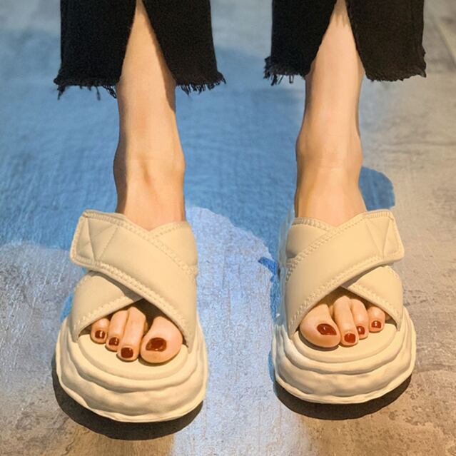 【予約販売】サンダル レディース 厚底 スリッパ ブラック ベージュ クロス カジュアル スポーティー ビーチサンダル 靴 お洒落 ストリート 旅行 韓国 22.5cm/23cm/23.5cm/24cm/24.5cm/25cm