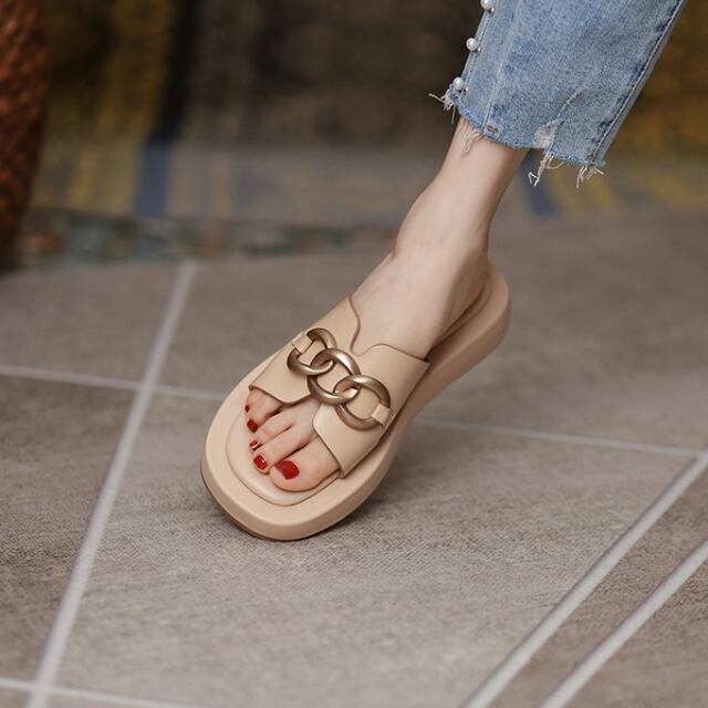 【予約販売】サンダル レディース 厚底 スリッパ チェーン アイボリー ベージュ カジュアル ゴージャス ビーチサンダル 靴 お洒落 ストリート 旅行 韓国 22.5cm/23cm/23.5cm/24cm/24.5cm/25cm