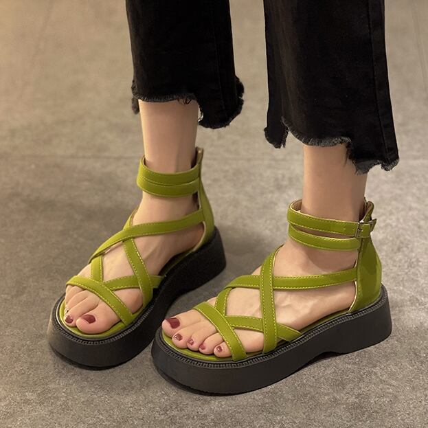 【予約販売】サンダル レディース 厚底 編み上げ ブラック ベージュ カーキ ガーリー カジュアル スポーティー ビーチサンダル 靴 お洒落 ストリート 旅行 韓国 22.5cm/23cm/23.5cm/24cm/24.5cm/25cm