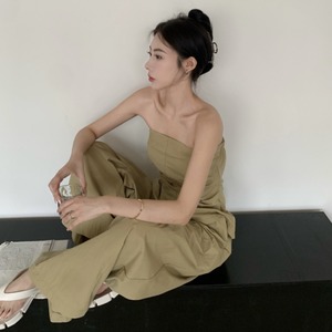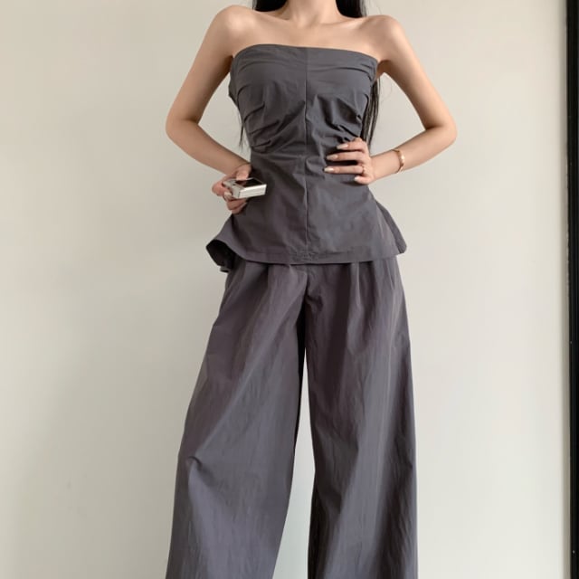 【予約販売】セットアップ レディース ワイドパンツ ベアトップ ベージュ グレー 美ライン 背中見せ こなれ感 大人可愛い きれいめ 楽ちん エレガント おしゃれ 旅行 韓国 春 夏 秋 トレンド S/M