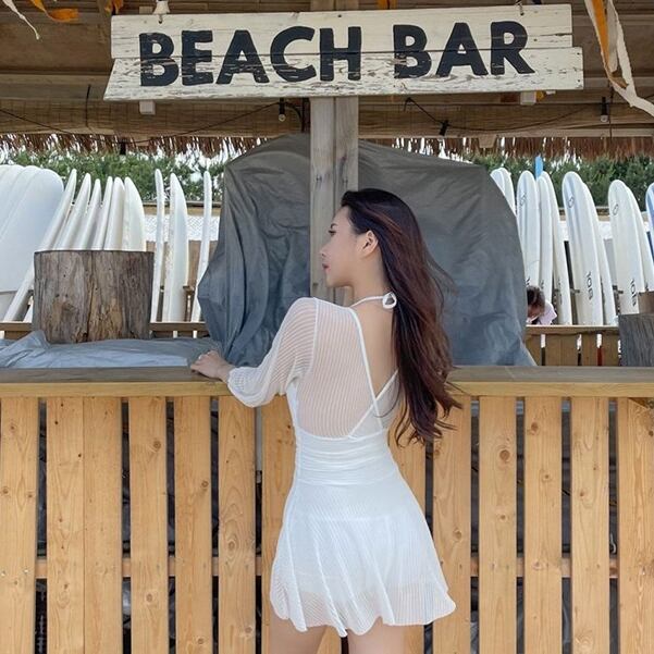 【予約販売】水着 レディース ワンピース Vネック セクシー レース 透け感 黒 ブラック ホワイト 白 海 夏 ビーチ プール リゾート スイムウェア 可愛い 紫外線対策 こなれ感 お洒落 韓国 トレンド M/L/XL